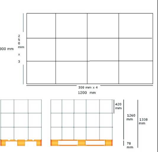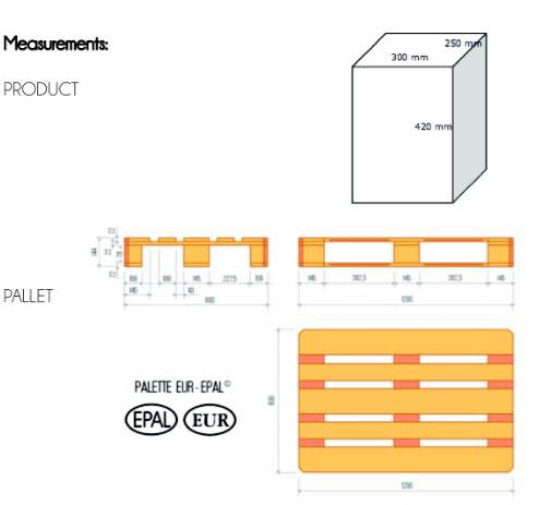 Product distribution for use in packaging stackable pallets 20 feet.