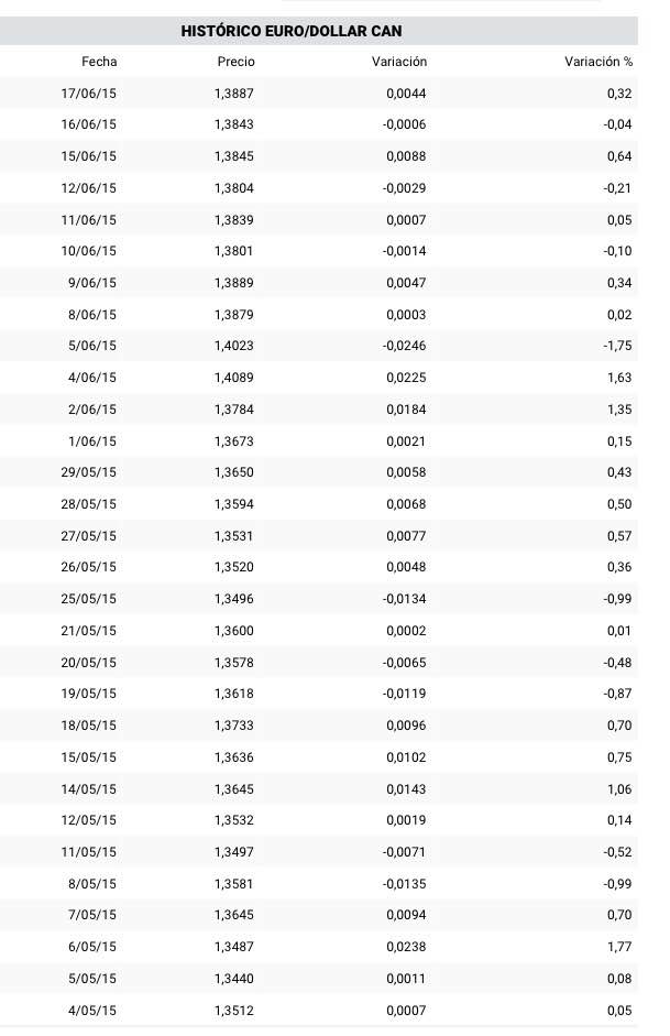 Quotes EURO / CAD